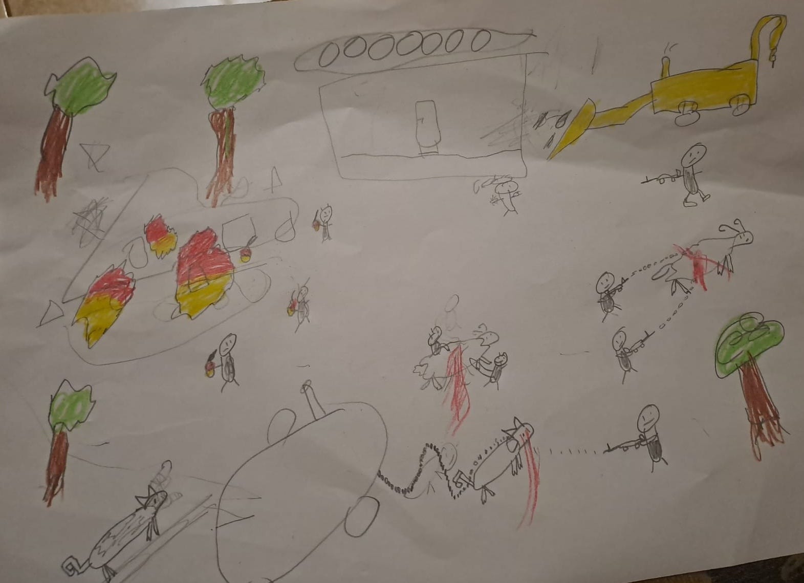 And the children? I texted with Adnan’s wife, who works at the Kisan school library, to ask how they were doing. I also asked if the children had done any drawings that depicted their recent experience. This was her reply: